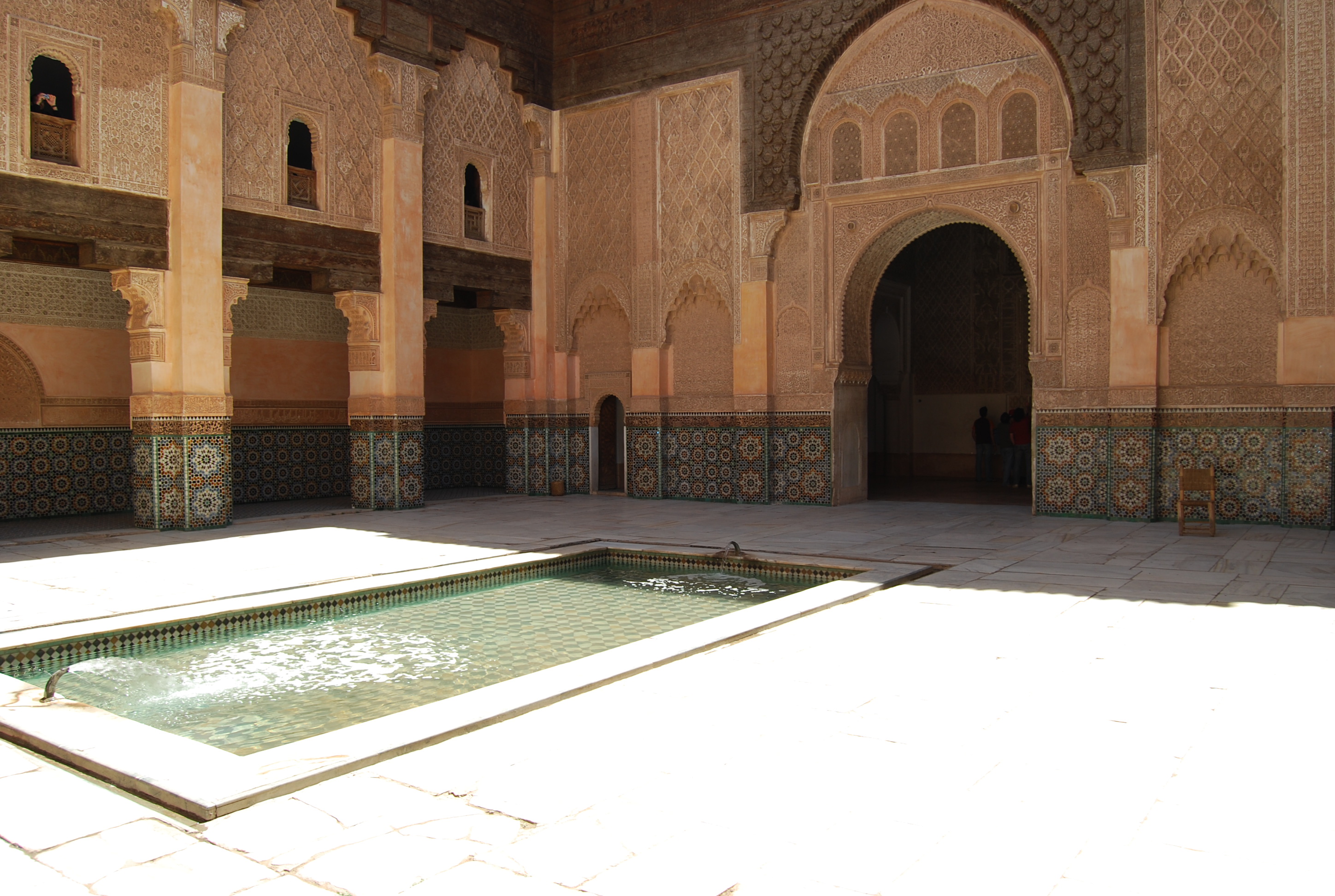 Ali ben Youssef Medersa is only a short walk from Dar Saria, where we are staying. The medersa is the city’s theological college originally founded in the 14th century. It was restored in 1564, and the intricate stucco and carved wood decoration are detailed to the point of mesmerizing.