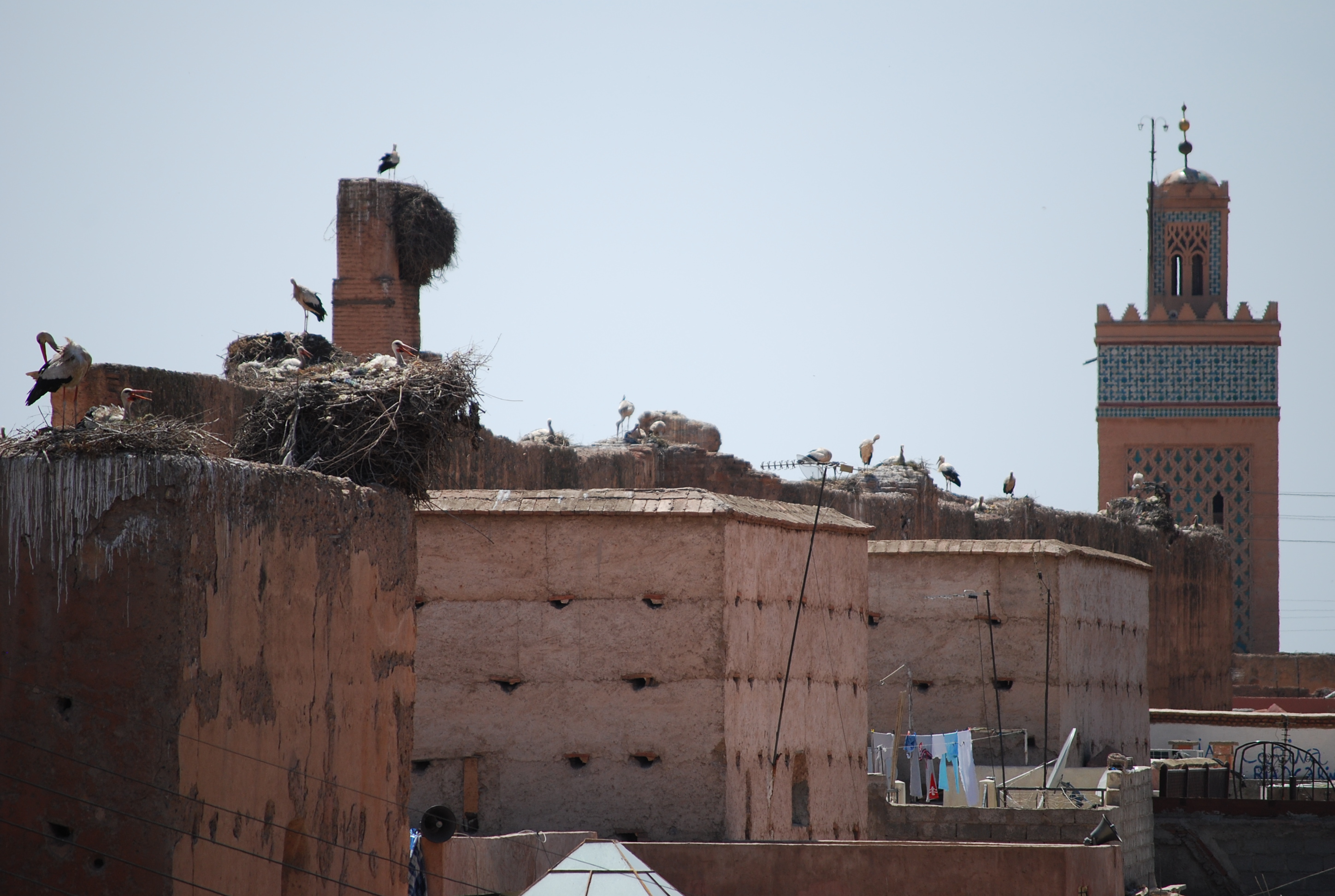 Our destination was Kozybar, a nice outdoor lunch spot whose roof deck offers tremendous views of the many storks that nest on the walls of Dar el-Bacha, an old palace. Right next door is another former palace, Palace de la Bahia, whose many rooms and courtyards hosted P Diddy on a visit to Morocco in 2002. Again, the level of painstaking detail was evident everywhere — in the metal work and stone carvings.