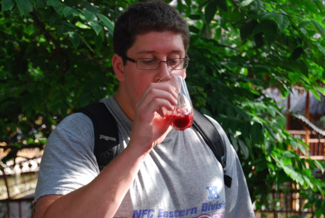 Last up was the remaining glass of blood. But this was perhaps too much. And after one sip and a slight gag, the glass was back on the table and we were ready to get the heck out of dodge.