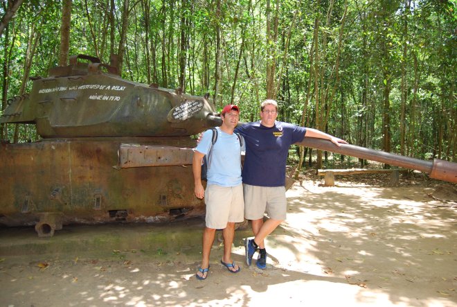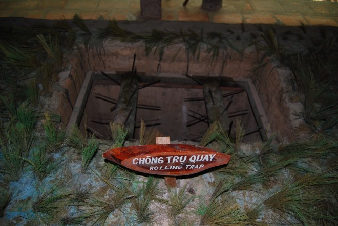 After a short propaganda video (sample line: “Like crazy batch of chickens, the Americans fired into women and into schools.”), we set out to explore the area. The tunnels themselves were up to 10 meters below ground and absolutely tiny. After one look, we pretended to crawl through them and moved on.