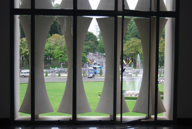 We had recovered by the time our driver dropped us off at the Hyatt. With a couple of hours to spare, we walked past Notre Dame Cathedral en route to the Reunification Palace, built in 1966 to serve as South Vietnam’s government headquarters.