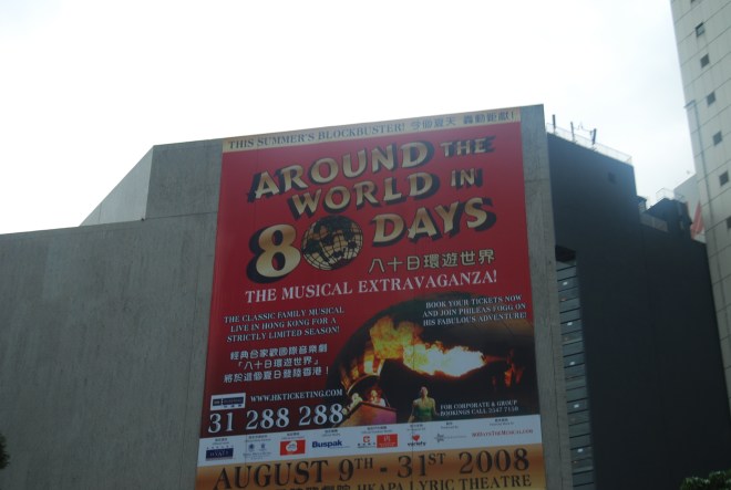 The Airport Express dropped me off at Hong Kong station, which was only a short taxi ride to Causeway Bay, the central area in which I’m staying. Along the way, we passed this billboard, which on day 80 of this trip around the world, was pretty weird and coincidental.