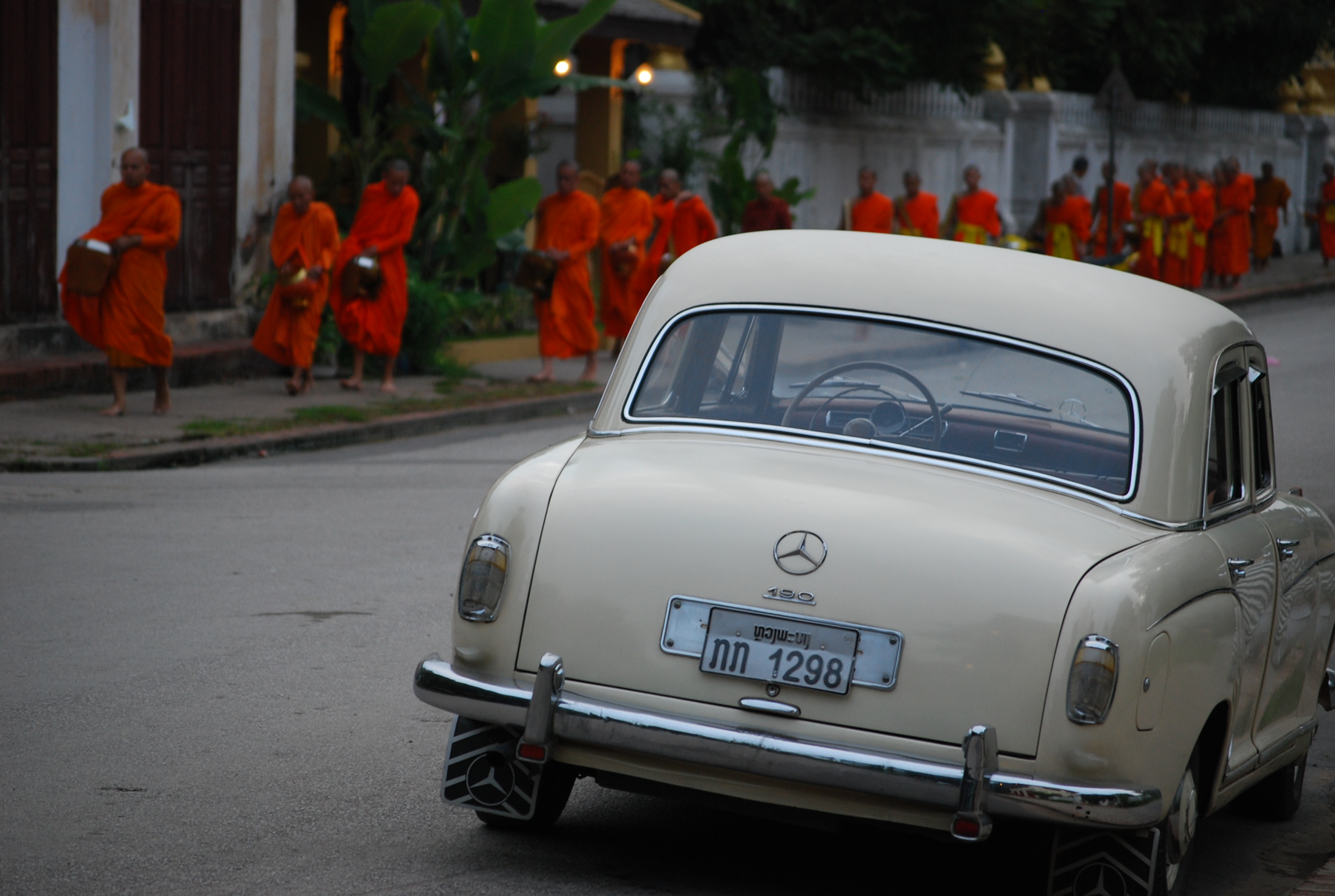 In their burnt-sienna robes, the monks yield to traffic yet don’t say a word. They are focused and they are solemn. Soon the town is awash in color, complementing the quickly rising sun. And, just as quickly as they are here, they are gone.