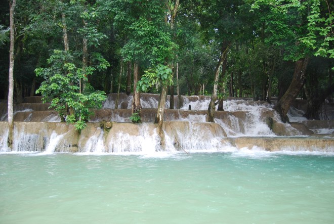 After a short walk, we arrived at Tad Sae waterfall, a beautiful and secluded spot, with clear water gushing over many levels of limestone. There, we met Mirabelle, our beast of burden who would be showing us around.