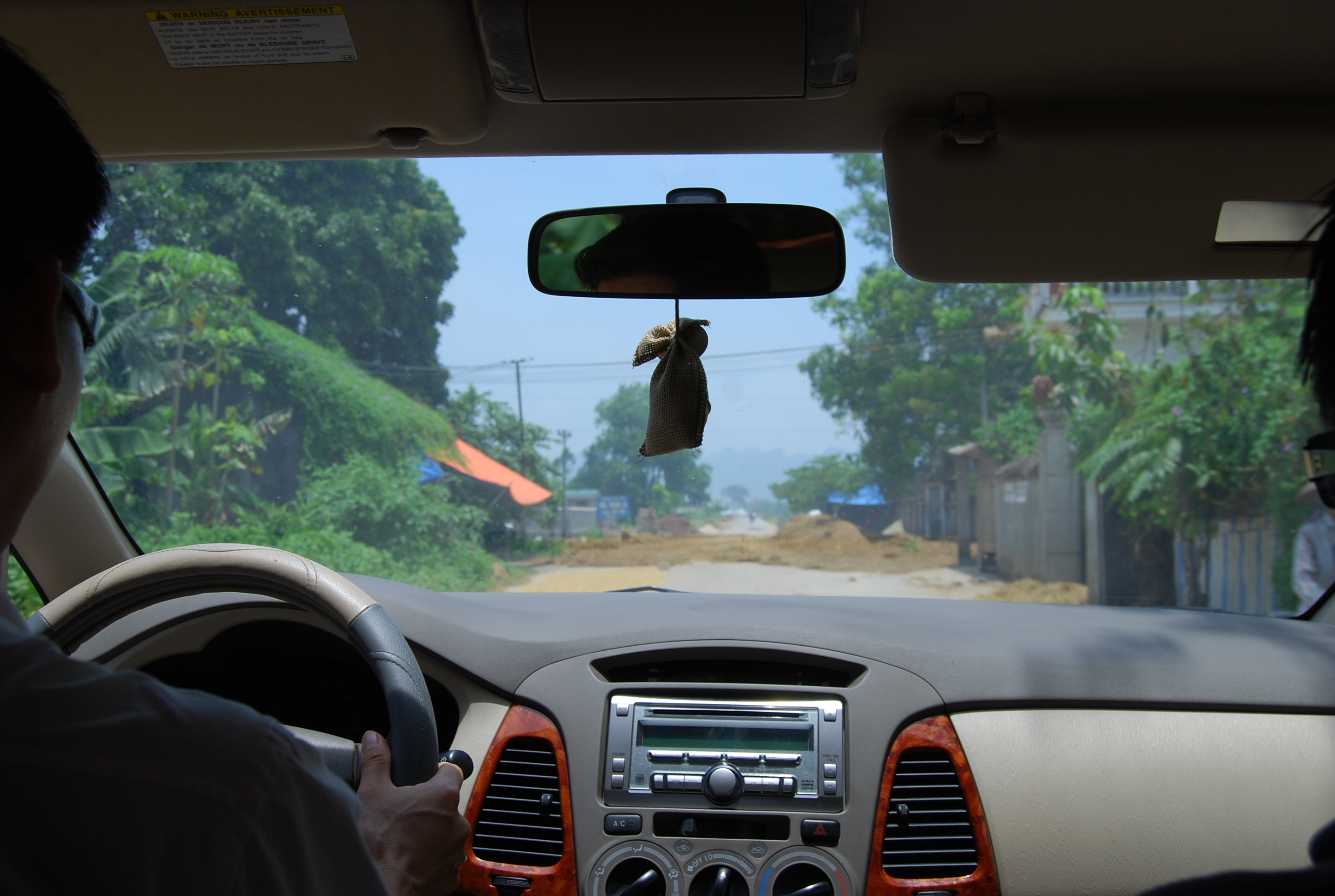 Traffic was horrible getting out of town. An accident — one of 30 daily, according to our guide, Zoom — created a monster gridlock that set us back another hour. Today was also the peak of the bi-annual rice harvest here, so the streets of the countryside were filled with drying plants, creating an obstacle course that delayed us even further.