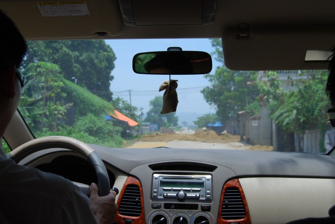 We didn’t really know what we were getting ourselves into after signing up for a private trip to the Perfume Pagoda, a complex of Buddhist temples and pagodas about 2 hours south of Hanoi. Last night, the receptionist told me that the trip would leave at 8 a.m. “It’s hot, you leave early” she said. Of course, we slept in this morning and didn’t get rolling until 10 a.m., for which we’d pay the price.