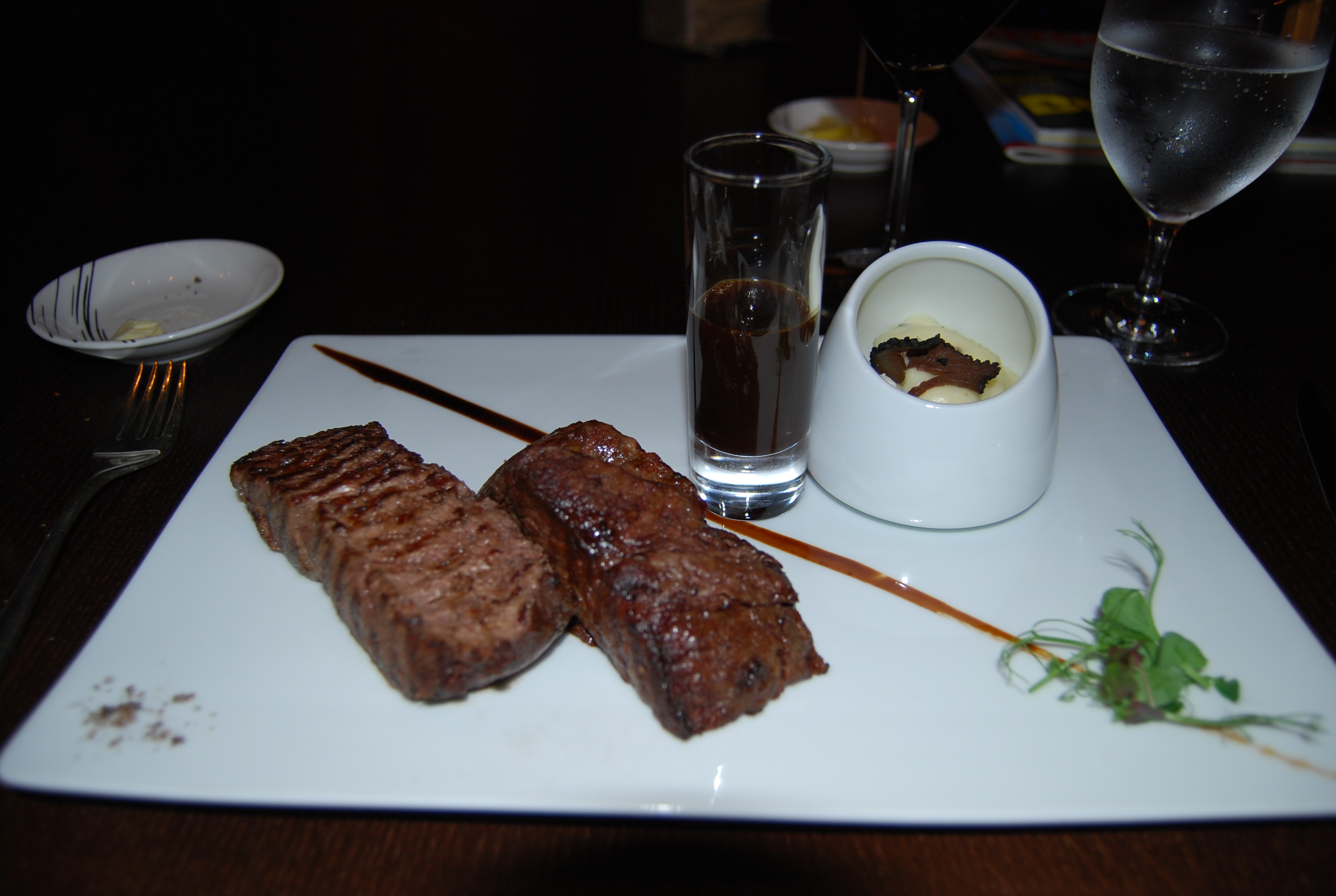 This was followed by an Australian black angus tenderloin, seared to a perfect medium rare and served with a peppercorn sauce and truffled mashed potatoes. With a glass of Spanish rioja, it was bliss.