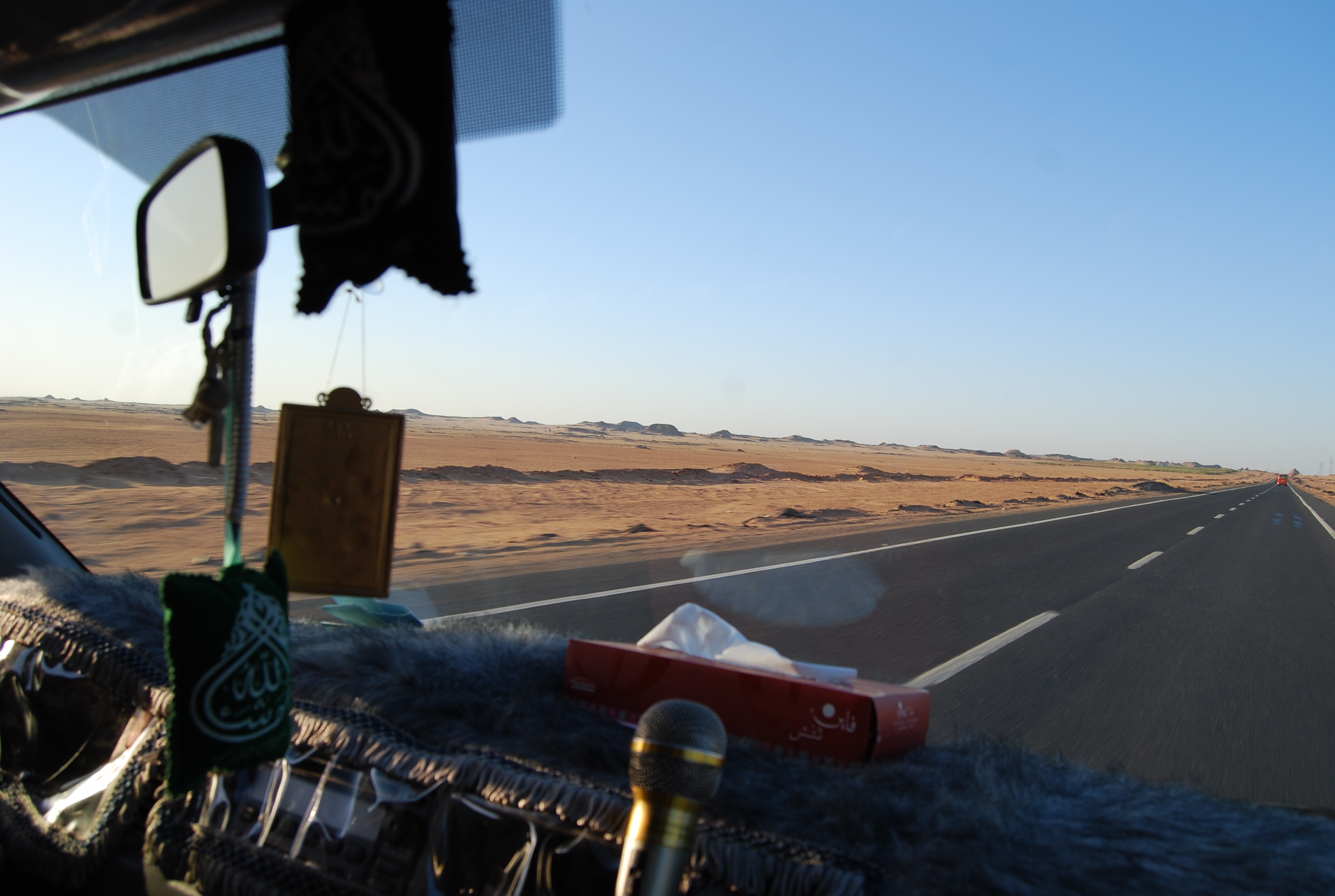 Around 4:30 a.m., we boarded our van and were instantly part of a 30-bus race through the streets of Aswan. Our driver has to be given credit for his somewhat defensive tactic, especially when navigating the sand-dune covered roads beyond the city center. The same can’t be said for others, including the large motor coaches that roared past us at over 100 m.p.h. My spot in the “suicide seat” offered a good vantage point after the sun came up, watching the Sahara whiz by.