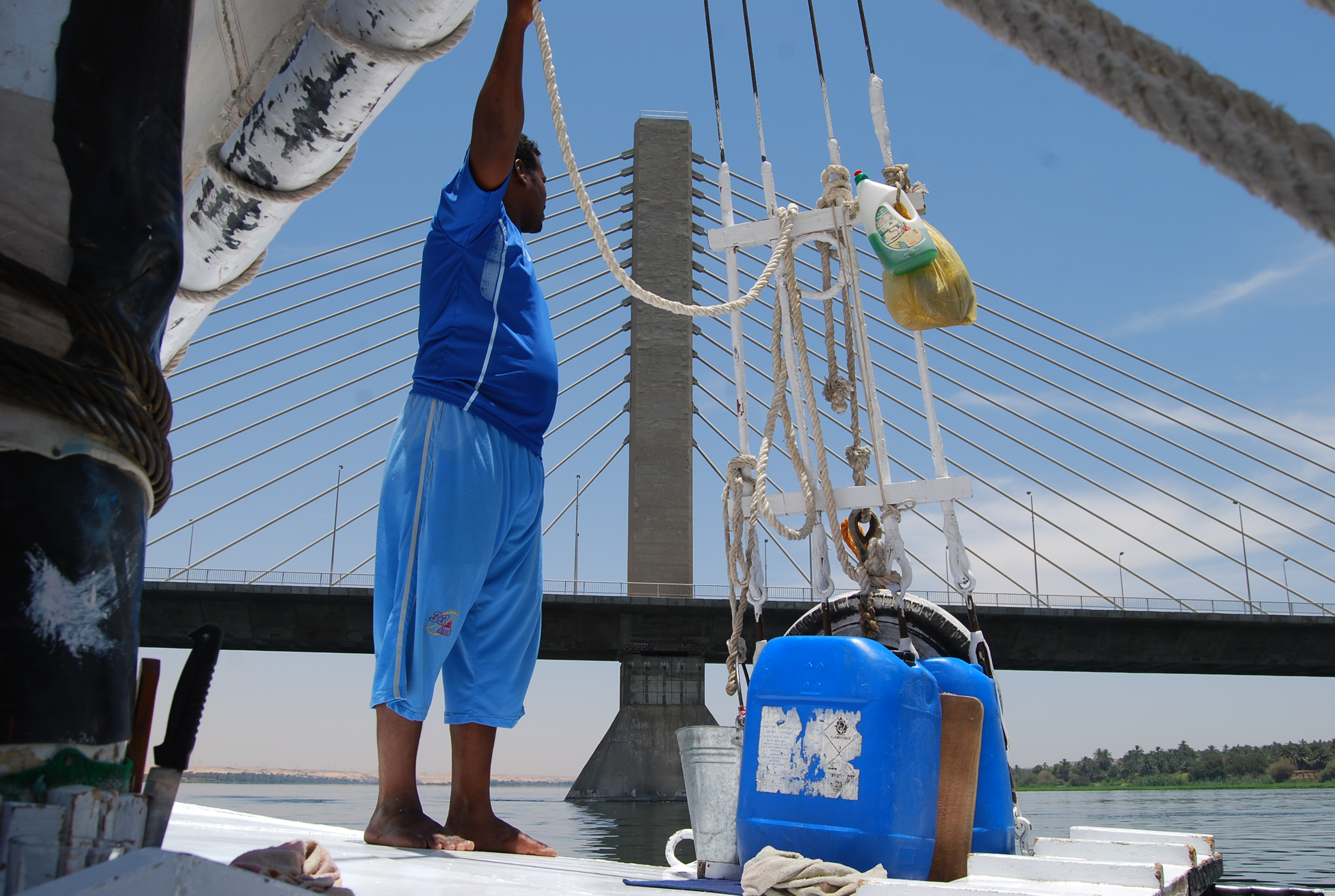 With temperatures topping 110 degrees today, it was a relief to board our felucca, Princess Feria, at around 10 a.m. for a sail up the Nile River. Feluccas are traditional Egyptian single deck sailboats that have been used for thousands of years — they have simple rigging systems, huge masts and plenty of space for lounging.