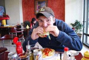 So, we spent much of today visiting two bus terminals, the train station, an airline ticketing agency and a travel agency (closed). We were finally able to book a private grand taxi heading directly there at noon tomorrow for 600 dirham, much more reasonable. Finding this deal was probably the day’s biggest success — as was finding my first cheeseburger for lunch!